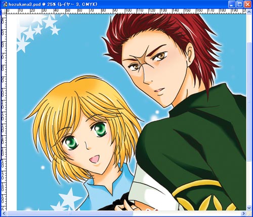 ほづかな本の表紙完成しました~。火積の髪の毛の塗りが一番時間かかったかもしれない。オールバックはやっぱ難しいよ!でも髪の毛塗るのが一番好きなんですよね。