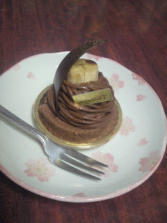 今日は森田さんの誕生日ですね!なので、今回も会社帰りにケーキ買って帰って、こっそりお祝いしましたv今回はチョコバナナモンブランなのです。