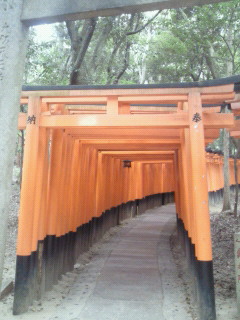 で、そんなワケで今回巡って来たのが伏見稲荷→清水→祇園→四条→壬生屯所でした。この写メも某有名な場所ですヨ。清水さんの方で食べたみたらし団子と牛肉しぐれ饅がおいしかった!八つ橋シュークリームもオススメなんですけど、ニッキがダメな人も多いので、好き嫌いは分かれるかも。やっぱね、観光してる時の食べ歩きはいいよね!